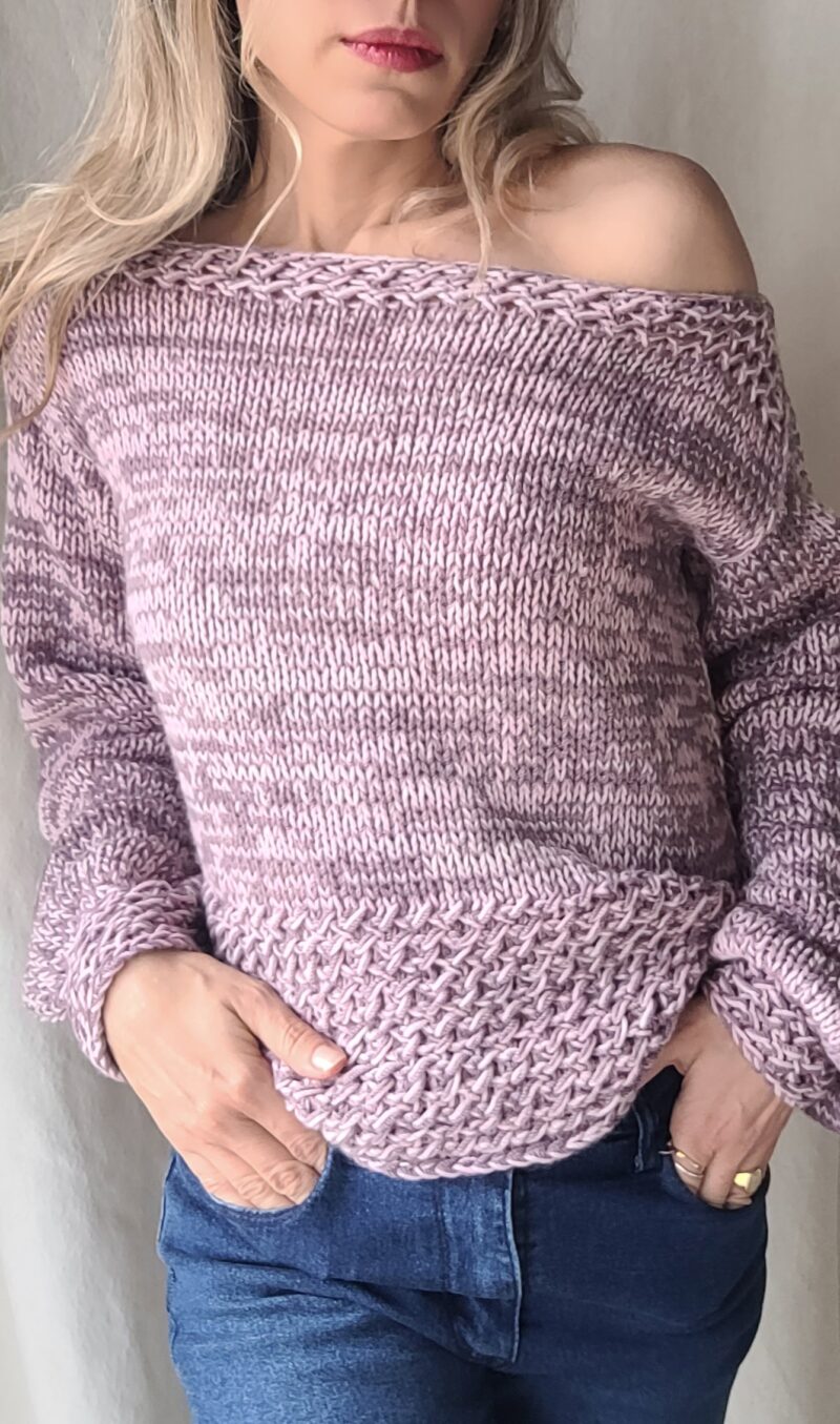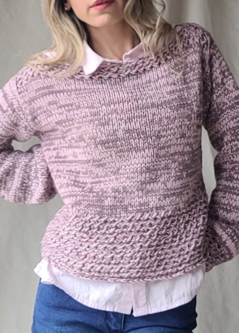 Este sweater surge a raíz de buscar la forma de generar mis propios colores de hilados, combinando distintos tonos, jugando con el contraste y personalizando mis tejidos.