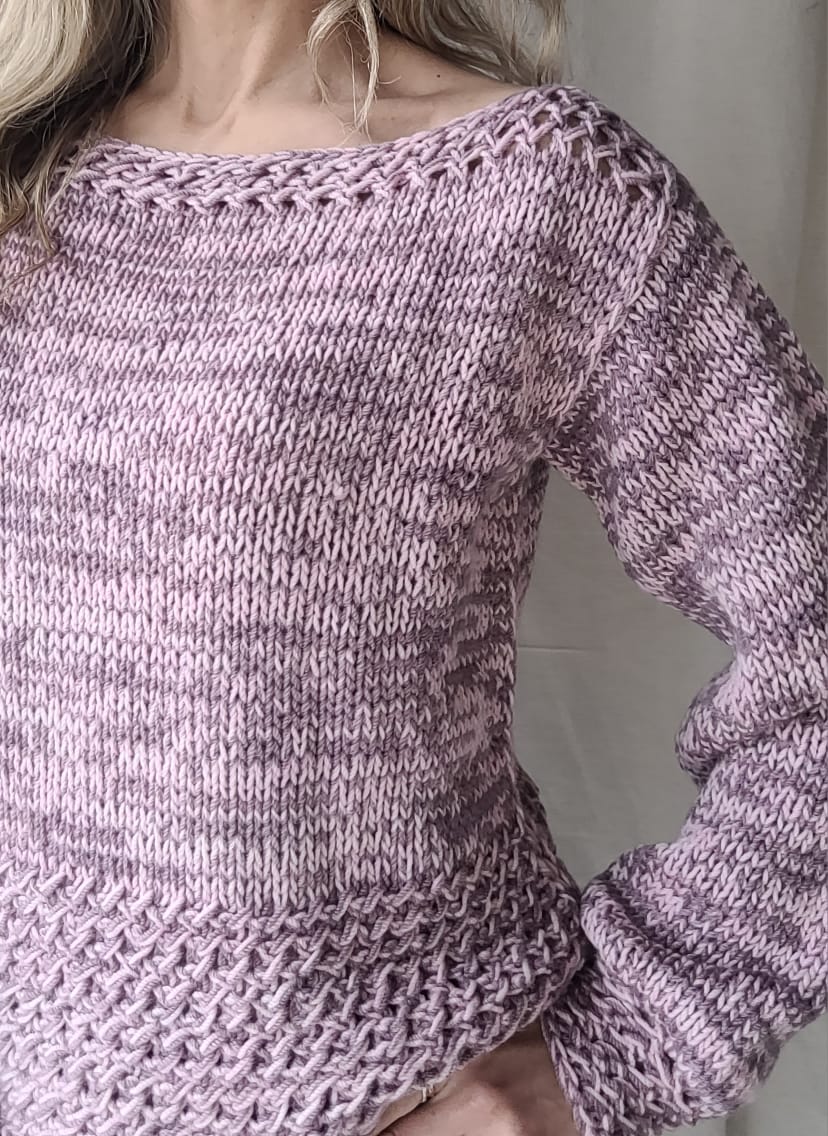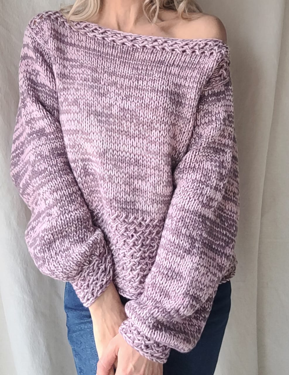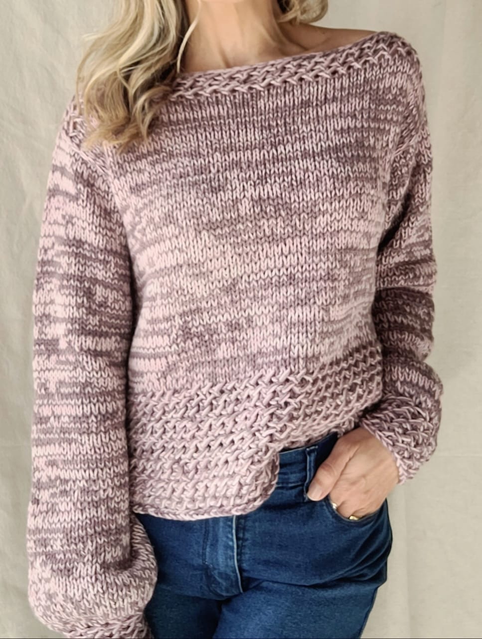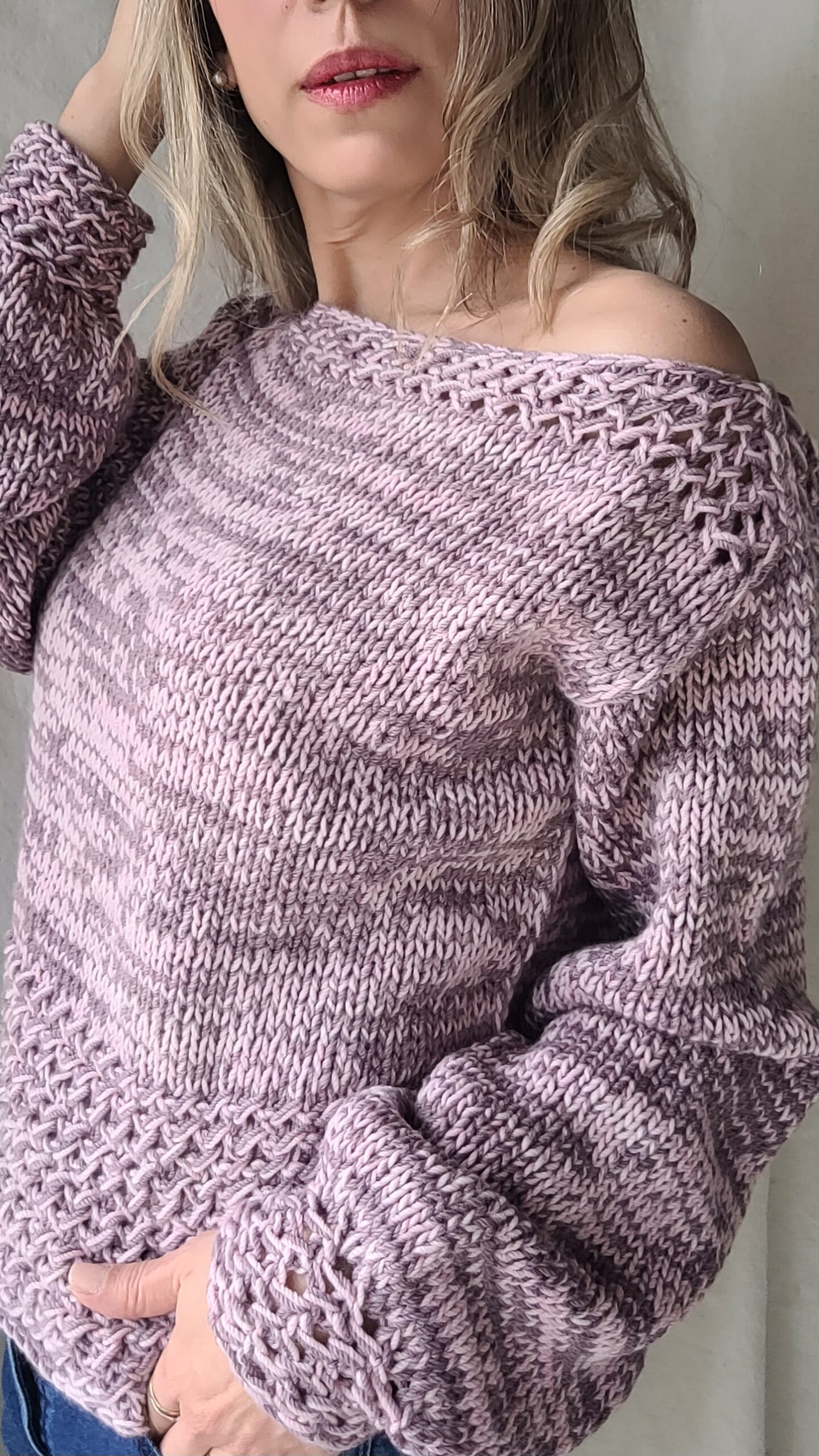 Este sweater surge a raíz de buscar la forma de generar mis propios colores de hilados, combinando distintos tonos, jugando con el contraste y personalizando mis tejidos.